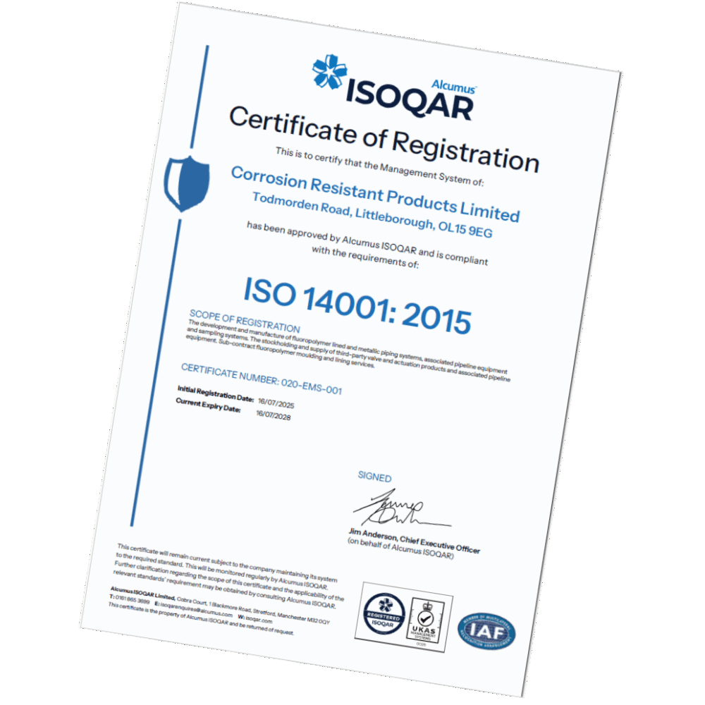 CRP has appointed third party testing to confirm the static-dissipating properties of our lined piping are conforming to relevant standards.
